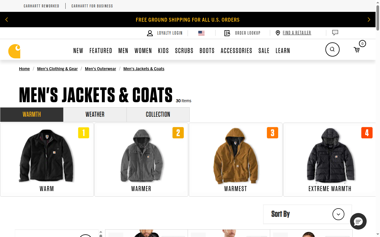 Go to www.carhartt.com and search for a men's jacket on sale with the highest discount.