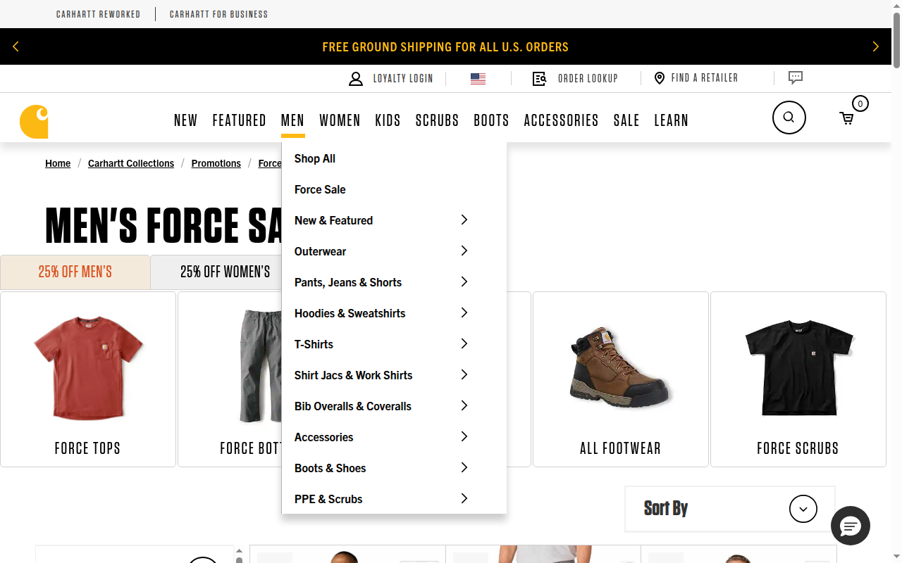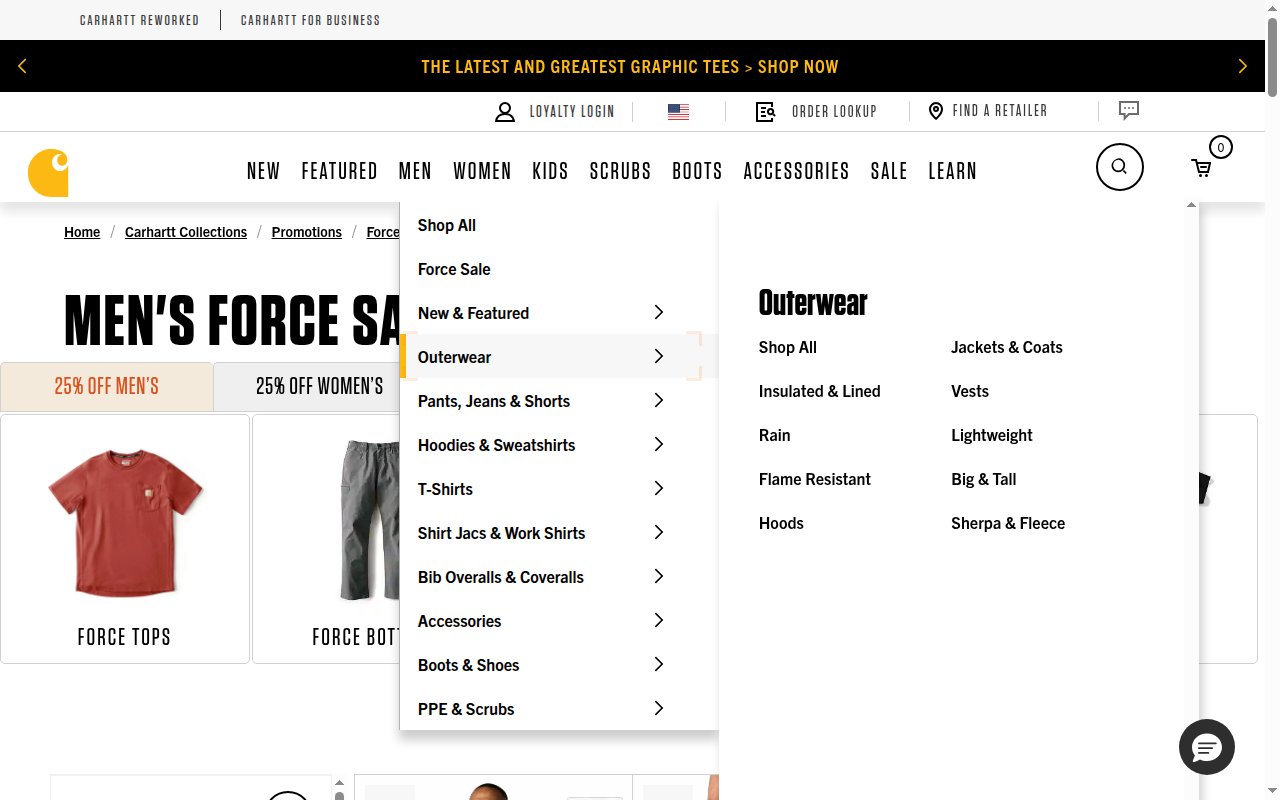 Current: Users must navigate Men > Force Sale > Outerwear > Jackets & Coats to reach the target listing.
